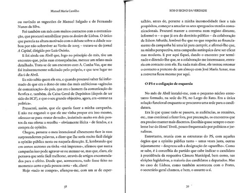 Comprei e li o livro do Professor Manuel Maria Carrilho «Sob o Signo da Verdade», da Publicações Dom Quixote, editado em Lisboa no ano de 2006.