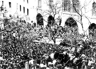 Um numeroso grupo de populares, entre os quais se contavam algumas das vítimas às mãos dos torcionários da PIDE/DGS, marcharam sobre a sede da polícia politica, reclamando a sua detenção e clamando até por justiça popular.