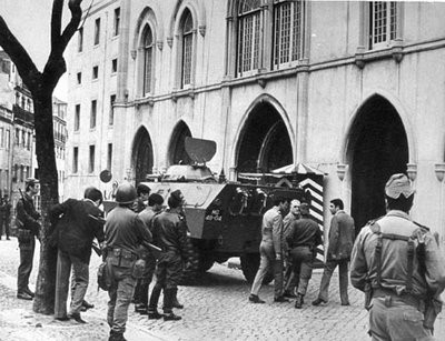 É cercado, pelas forças de Salgueiro Maia, o Quartel da GNR do Largo do Carmo, onde se encontra o presidente do Conselho, Marcelo Caetano.